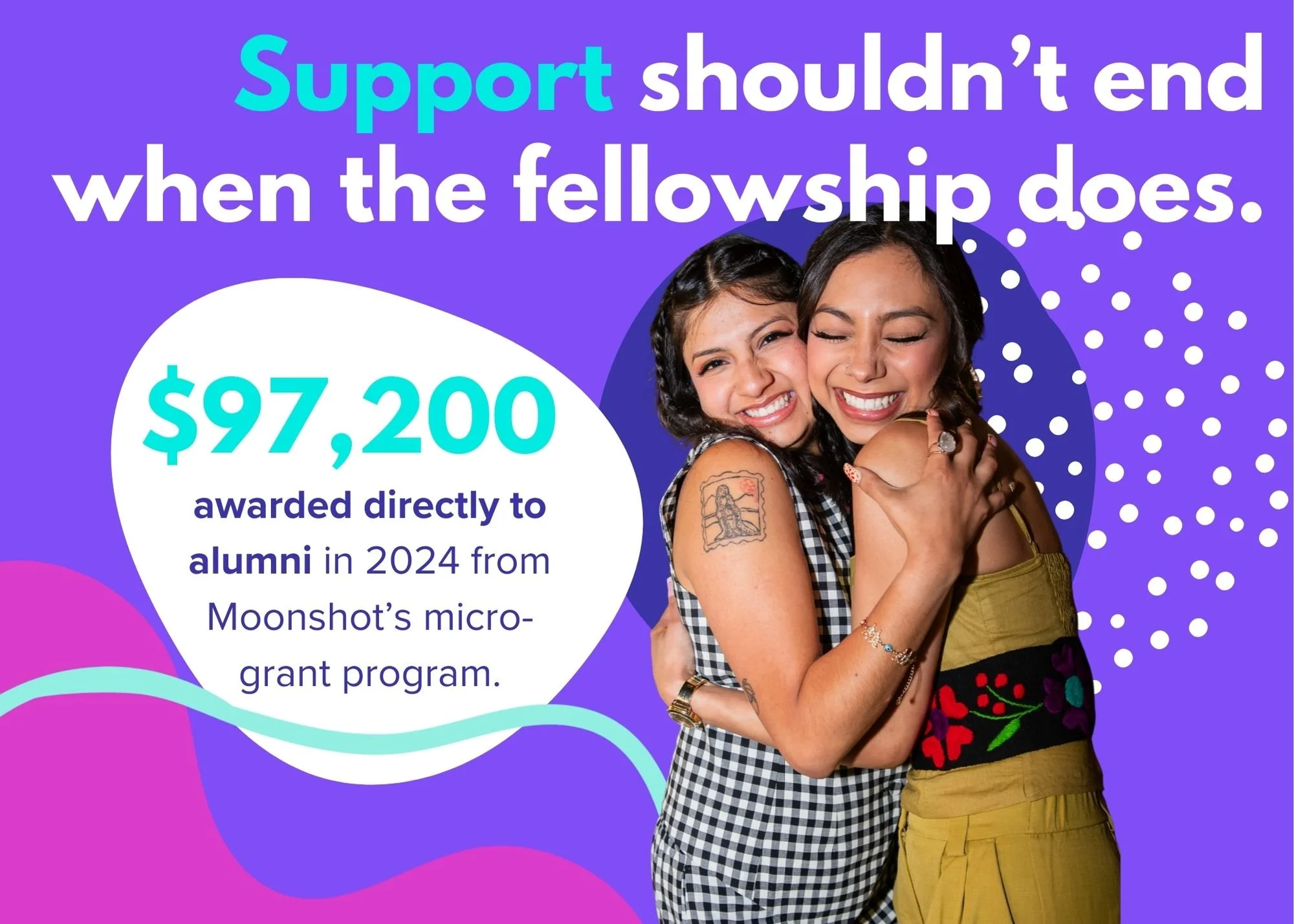 But staying in this work isn’t easy. It takes stability. It takes community. It takes support. That’s why Moonshot doesn’t end our support when the fellowship does.
